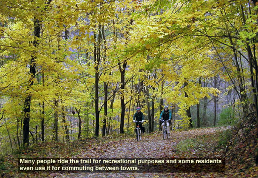 The Cambria County Conservation and Recreation Authority has a vision of connecting the entire region through the trail. The Authority has its sights set on creating a lively, multi-use green resource for residents and visitors alike. Using the walking and biking trail, the Authority enhanced areas with art and historical installations to remind people of the early uses of the area for coal mining, forestry and iron processing. Many people ride the trail for recreational purposes and some residents even use it for commuting between towns.
