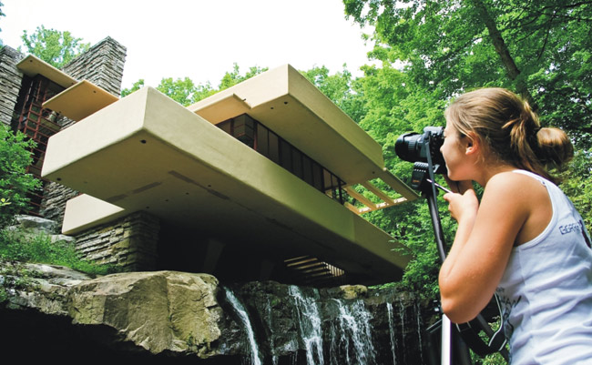 Youths Discover Fallingwater with “Eyes Wide Open” Fallingwater is a house like no other. Experiencing the Frank Lloyd Wright masterwork, seeing its location atop a waterfall and its many other engineering-defying achievements, can inspire the creative impulses in us all. Imagine being a seventh grader who is seeing Fallingwater for the first time – and is given the charge to photograph the experience for an exhibition that will ultimately visit three states and extend out of the country. Seventeen seventh and eighth graders, six of whom are students from schools in Fayette County, received this opportunity. They were trained and given a professional camera, then asked to explore and photograph Fallingwater. The project is a collaboration with Fallingwater, Unity Temple, the Westcott House Foundation, and “Eyes Wide Open Worldwide,” a nonprofit organization dedicated to inspiring youths to develop a passion for the arts and foster their creativity through photography. The organization strives to help young adults develop a deeper passion for the arts, increase their confidence and feel a sense of accomplishment. “This project was exciting for us, not only because we partnered with other Wright sites, but perhaps most importantly, we got to work more closely with some local kids, only one of whom had visited Fallingwater before,” said Cara Armstrong, Fallingwater’s Curator of Education.” It was pretty enthralling to see the students discover Fallingwater for themselves and for them to realize The exhibition is called, “The Architecture of Frank Lloyd Wright Through the Eyes of a Child,” and opened this year in Oak Park, Ill. at Wright’s Unity Temple. Beginning on March 1, 2008 through May 18, 2008, the exhibition will be displayed at The Barn at Fallingwater where it will be displayed through May 18. The exhibition then moves to Springfield, Ohio and finally to the Toronto Photography Festival, considered the largest photography event in the world. Dr. Stephen Lai, whose photography was exhibited earlier this year at the Barn at Fallingwater, visited Fallingwater to meet and instruct the young participants in photography. Like Ty Fischer, the founder and director of Eyes Wide Open Worldwide, Lai talked with them as fellow artists and they responded with enthusiasm. “I think that shows up in their photographs,” Armstrong said. “We’re not the only ones that feel this project is special: — Iit received an American Architectural Foundation Award of National Distinction as one of top 42 programs in the country for Best Practices in Architectural Education.” For more information on the exhibition, contact Cara Armstrong at carmstrong@paconserve.org.